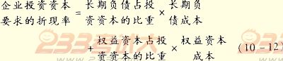 折现率=Σ(各种筹资渠道资金占总资本的比重×该种资本的资本成本率)其中:所有者权益的资金成本率可以使用资本资产定价模型求得