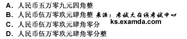 20、某商场销售一批商品,货款的小写金额为“¥50009.40”,则发票的大写金额为( )。