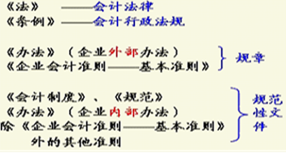 会计法律、会计行政法规、国家统一的会计制度(会计部门规章、会计规范性文件)。