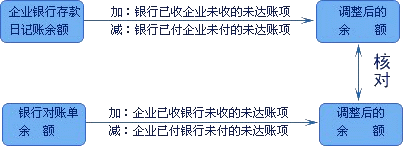 (2)企业已付,银行未付;即企业已付款入账,银行尚未付款入账;