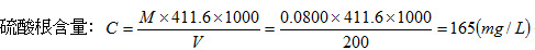 用重量法测定地下水水样中硫酸根的含量,从试料中沉淀出来的硫酸钡的重量为0.0800g,试料的体积为200m1,试计算该水样中硫酸根的含量。