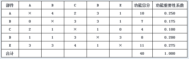 45、单项选择题 适用于被评价对象在功能重要程度上的差异性不太大,并且评价对象子功能数目不太多的是()。