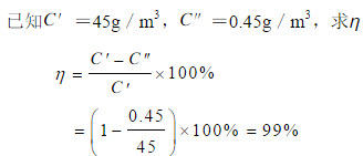 145、问答题 计算题:某燃煤锅炉配用236.16m2的电除尘器,标准状况下,入口烟气含尘浓度C′=45g/m3,出口含尘浓度C″=0.45g/m3,求该电除尘器的除尘效率η?(忽略除尘器漏风)