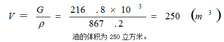 8、问答题 计算题:某油罐内的油重为216.8×103kg,油品密度为867.2kg/m3,求油的体积?