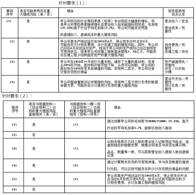 本题解析:试题答案1.(1)违反职业道德守则。理由:姜鹏为哲诚会计师事务所的合伙人,与张红同处一个业务部门,在张红的审计客户中拥有直接经济利益,将因自身利益产生非常严重的不利影响,违反了职业道德守则的规定。(2)不违反职业道德守则。理由:前任审计项目合伙人林静加入启航公司后,担任启航公司的财务总监,2014年华为汽车通过吸收合并并购了启航公司,林静因此成为华为汽车子公司(启航公司)的高级管理人员,在同时满足下列条件时,不被视为独立性受到损害:①当林静接受该职务时,并未预料到会发生企业合并;②林静在会计师事务所中应得的报酬或福利都已全额支付;③林静未继续参与会计师事务所的经营活动或专业活动;④已就林静在审计客户中的职位与治理层讨论。(3)违反职业道德守则。理由:会计师事务所为两家存在直接竞争关系的客户提供审计服务,可能存在利益冲突,应告知华为汽车和佳木汽车公司,并在签订业务约定书前取得他们的同意。(4)违反职业道德守则。华为汽车与华鑫轮胎公司为关联实体,哲信会计师事务所与哲诚会计师事务所是网络事务所,因此哲信会计师事务所为华鑫轮胎公司执行的内部审计服务将对哲诚会计师事务所的独立性产生不利影响。(5)违反职业道德守则。审计项目合伙人张红以低于市场10%的价格购买华为汽车生产的产品,虽然款项已经全部支付,但与华为汽车之间存在经济利益关系,可能因自身利益产生不利影响。(6)违反职业道德守则。理由:注册会计师赵雯作为华为汽车2013年审计报告的项目质量控制复核的负责人,于2014年度加入审计客户,担任高级管理人员,将因密切关系和外在压力产生不利影响。(7)违反职业道德守则。理由:哲信会计师事务所与哲诚会计师事务所是网络事务所,哲信会计师事务所的合伙人赵宇的主要近亲属持有华为汽车股票,虽金额较小,但属于直接经济利益,会对独立性产生不利影响。2.(1)不符合规定。理由:项目质量控制复核人在复核期间不以其他方式参与审计业务,否则影响其客观性。(2)不符合规定。理由:应在计划阶段针对特定项目实施准则要求在计划阶段应实施的程序。(3)不符合规定。理由:会计师事务所委派的审计项目组成员均不具有华为汽车审计工作需要的存货管理模块信息系统的专业技术知识,应该选派有专业能力的人员来承担该项工作。