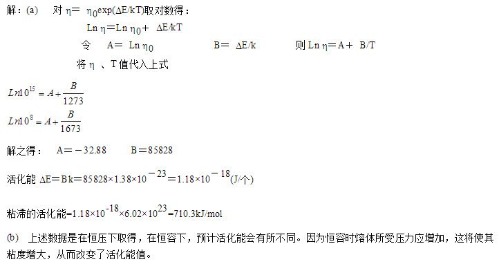 SiO2熔体的粘度在1000℃时为1015dpa.s,在1400℃时为108dpa.s,璃粘滞的活化能是多少?上述数据为恒压下取得,若在恒容下获得,你认为活化能会改变吗?为什么?