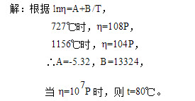 5、问答题 某熔体粘度在727℃时是108泊,1156℃时是104泊,要获得粘度为107泊的熔体,要加热到什么温度?