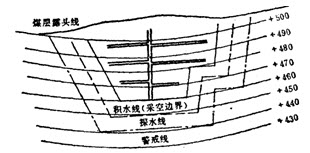 ③对有图纸资料的小窑,探水线至积水区边界的最小距离不得小于60m;对没有图纸资料可查的小窑,必须坚持有疑必探,先探后掘的原则,防止发生透水事故;