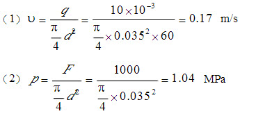 计算题:已知单杆液压缸缸筒直径D=50mm,活塞杆直径d=35mm,泵供油流量为q=10L/min,试求: