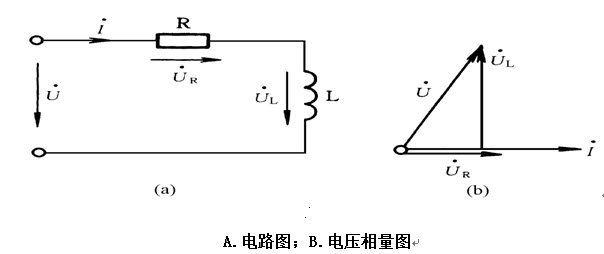148、问答题 制图题:画出电阻、电感串联(单相)交流电路图及电压相量图。