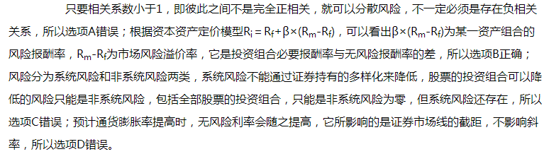 D、在充分组合的情况下,风险是指投资组合的系统风险,既不是单个资产的风险,也不是投资组合的全部风险