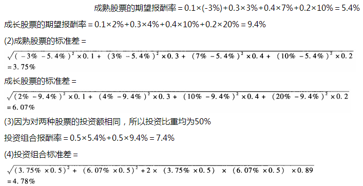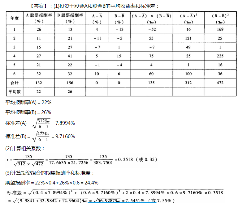 (1)分别计算投资于股票A和股票B的平均报酬率和标准差。