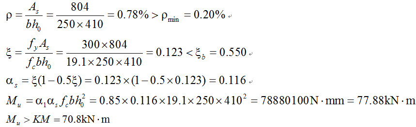本题解析:试题答案已知K=1.2,fc=19.1N/mm2,fy=300N/mm2,a=40mm。h0=450-40=410mm