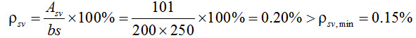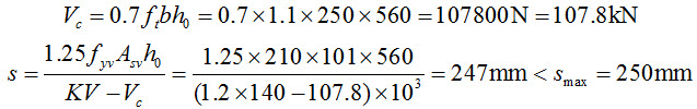 8的双肢箍(nAsv1=101mm2),试计算箍筋的间距s=?(smax=250mm,
