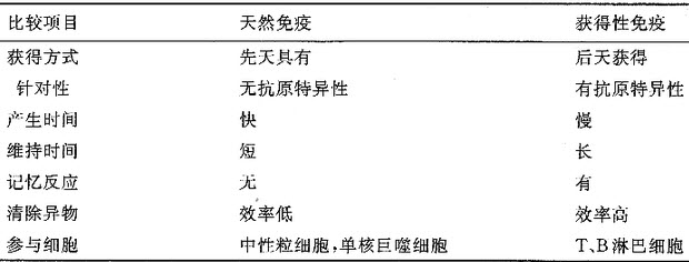 186、问答题 简述天然免疫(非特异性免疫)和获得性免疫(特异性免疫)的比较特点。