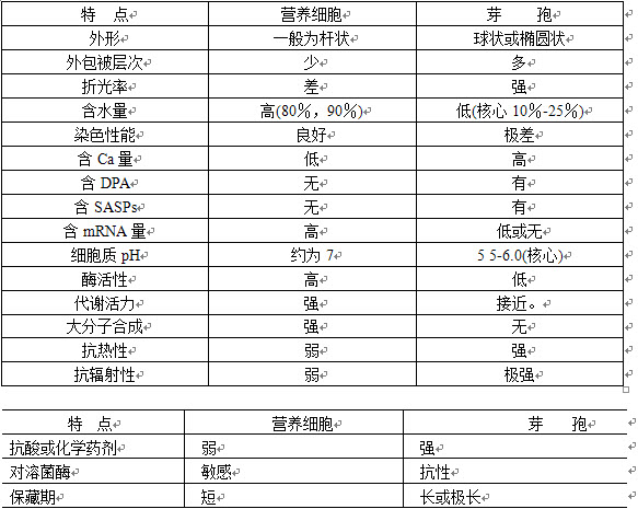 27、问答题 试对细菌营养细胞和芽孢的10项形态、构造和特性作一比较表。