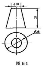 6、问答题 绘图题:画出一个圆台的二视图,并标注尺寸(尺寸自定)。