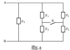 7、问答题 绘图题:画出当开关S打开时:R1+R2、R3+R4、R5三者并联的电路图。当开关S闭合时:R1、R3并联与(R2、R4并联)再串联,最后再与R5并联的电路图。