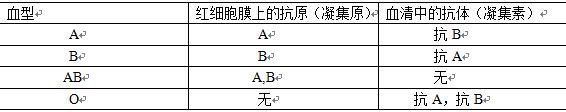 本题解析:试题答案是根据红细胞膜所含的凝集原(即血型抗原)的不同或有无而分为四个基本类型。凡红细胞膜只含A凝集原的为A型,只含B凝集原的为B型,A、B两种凝集原都有的为AB型,不含A、B两种凝集原的为O型。