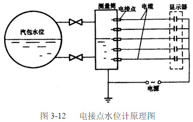 本题答案:图3-12是电接点水位计的工作原理示意图。电接点水位计