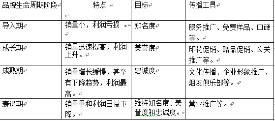 8、问答题  品牌生命周期各阶段的特点、传播目标是什么?各阶段适用的传播工具有哪些?请用表格形式简要汇总表述。