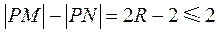 当且仅当圆P的圆心为(2,0)时,R=2,所以当圆P的半径最长时,