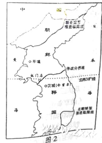 12.图2是20世纪50年代朝鲜半岛形势图,该图可以反映出