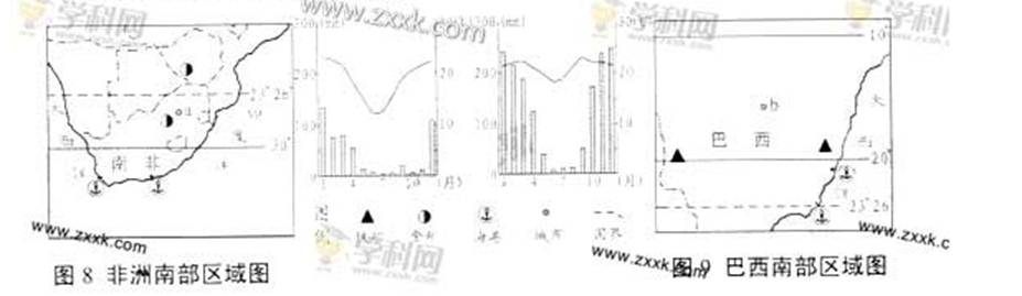 (1)请据图8分别说明南非纬度位置、海陆位置优越性。(8分)