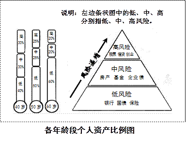 3、语言运用题 为提醒普通中老年民众理性投资,使个人资产在安全的前提下有效增值,专业理财师绘制了下图。请根据下图的信息,续写理财师的建议。不超过13个字。