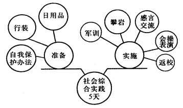 5、语言运用题 下面是某中学暑期到社会实践基地进行社会综合实践活动的构思框架示意图,请把这个构
