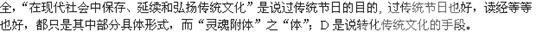 C.和读经、穿汉服、讲国学、祭祖先等行为一样,实现了在现代社会中保存、延续和弘扬传统文化。