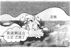 4、语言运用题 仔细观察下面题为“北极熊的家在哪里?”的漫画,写一段描述画面的文字,并表达你的感想,不超过70字。