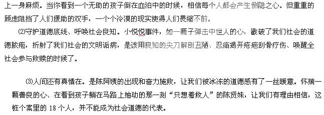 3、写作题 请就“小悦悦事件”选一个角度,谈谈你的看法。(100字左右)