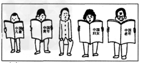 3、语言运用题 阅读下面的漫画,概括它的内容,指出它的寓意,并给它拟写一则标题。