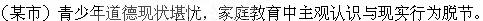 某市妇联“儿童和家庭工作部”,以一份名为“城市发展与家庭道德教育”的调查表,对全市986户家庭进行了调查。在2612份有效问卷中发现,只有30%的学生认为坐公交车不买票、在公共建筑上随意刻画违反了道德规范,40%的学生认为“吸毒”危害健康,46.1%的未成年人认为“诚实就意味着吃亏”。调查还发现,42.5%的小学生崇拜黑客,近80%的未成年人在网上看过与性有关的不健康的内容。
