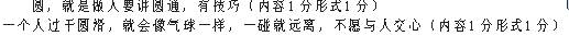 参考答案:C 本题解析:此类题目主要考查音近(同)字、形似(近)等正确书写,容易混淆,把握不准的可以用排除法进行筛选。A.相貌B.愚妄D.姿态。 本题难度:一般 2、单选题 使用正确的一项(C) 参考答案: 本题解析: 本题难度:一般 3、语言运用题 在下面的横线上续写适当的语句,组成一段语意连贯、前后句式一致的文字。(4分) 参考答案: 本题解析:略 本题难度:一般 4、语言运用题 在下面这段文字的横线处填上恰当的句子,使其与所在段落的其他句子组成排比句并符合上下文语境。 参考答案:你如果是月亮,就不要抱怨不能发出太阳的光辉!假如你是一只鲲鹏,就决不能满足于燕雀的志趣。假如你是一尊金佛,就决不能满足于门神的位置! 本题解析:仿写的句子与示例结构相同,运用比喻修辞格。 本题难度:一般 5、语言运用题 看漫画,请先说明漫画的内容,再揭示漫画的寓意。 参考答案:这幅名为《砍》的漫画中,一个人站在一片树桩中,脚踏在树桩上。他一手拄着一把大斧,一手摁在抬起的腿上。他砍光了树,脑袋也不翼而飞。漫画的寓意是人类破坏环境,必将殃及人类自身。 本题解析:考查图文转换。图文转换实际上是扩展语句的一种变式。考生要把图表所蕴含的信息(图表的内容,很多漫画图、标识图往往采用抽象化、夸张化的手法表达一定的内涵或讽刺意义。考生要仔细辨读,然后再用简明、连贯的语言组织答案。 本题难度:一般 |