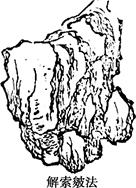 ④这种种的山石皴法从自然科学角度来看,是否反映了一些地质规律呢?我们的地质学家看到古代的山水画和《芥子园画传》中的图,能大致指出画的是哪种岩石:折带皴画的是水平层理的沉积岩和变质岩中的板岩;大斧劈皴画的山石可能是坚硬的花岗岩;解索皴画的是玄武岩山体;云头皴画的是风化的片岩;鬼皮皴画的是剥蚀特别厉害的沙岩。
