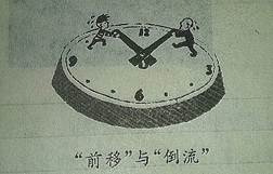 试题分析:本题有一定的难度,首先要看懂漫画的图画内容,一个小孩用力的将时间往前移,一个老人用力的将时间往后移,再结合题目“‘前移’与‘倒流’”来分析漫画的内涵:人处于不同时期,对时间的态度是不同的,人的心态也是不同的。