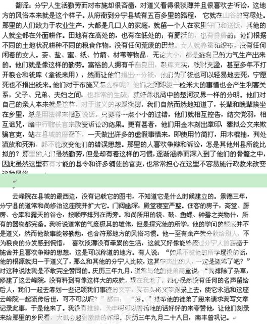 分宁人勤生而啬施,薄义而喜争,其土俗然也。自府来抵其县五百里, 在山谷穷处。其人修农桑之务,率数口之家,留一人守舍行馌,其外尽在田。 田高下硗腴,随所宜杂殖五谷,无废壤。女妇蚕杼,无懈人。茶盐蜜纸竹箭材苇之货,无有纤巨,治咸尽其身力。其勤如此。富者兼田千亩,廪实藏钱, 至累岁不发,然视捐一钱,可以易死,宁死无所捐。其于施何如也?其间利害不能以稊米,父子、兄弟、夫妇,相去若弈棋然。于其亲固然于义厚薄可知也长少族挨坐里闾相讲语以法律。意向小戾,则相告讦,结党诪张, 事关节以动视听。甚者画刻金木为章印,摹文书以绐吏,立县庭下,变伪一日千出,虽笞扑徙死交迹,不以属心。其喜争讼,岂比他州县哉?民虽勤而习如是,渐涵入骨髓,故贤令长佐吏比肩,常病其未易治教使移也。?