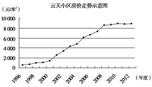 4、语言运用题 阅读下面的图表,用简明的语言概述云天小区房价走势变化的基本特点,不使用具体数字(包括年份),含标点不超过35字。