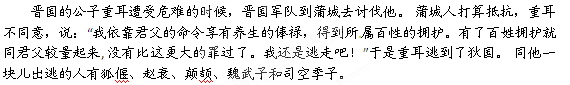 晋公子重耳之及于难也,晋人伐诸蒲城。蒲城人欲战,重耳不可,曰:“保君父之命而享其生禄,于是乎得人。有人而校①,?罪莫大焉。吾其奔也。”遂奔狄。从者狐偃、赵衰、颠颉、魏武子、?司空季子。