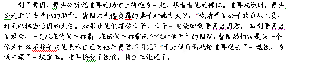 D.这篇文章记录的时间漫长、事件众多,但精于剪裁、善于组织,清晰叙述了一个落难贵公子经历磨难成长为一个成熟政治家的过程,为他后来成为霸主作了铺垫。