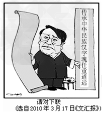 参考答案:(1)懂对联艺术的人越来越少;(某些)对联缺少特有的文化味(