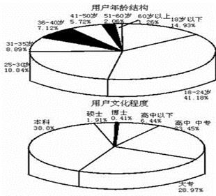 最主要特征是:56%的用户年龄小于24岁(或“近75%的用户年龄小于30岁”),70%以上的用户具有大专以上学历。(此空2分,两个方面各占1分,每超3字扣1分)可知:具有较高文化程度的年轻人是我国网上用户的主体。