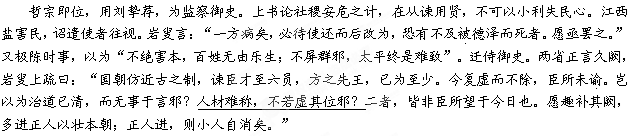 小题1:(1)皇帝下诏书让近臣推荐御史,推荐的人中意王岩叟,但还没有和王岩叟相识,于是有人告诉王岩叟可以去拜见一下。(关键词:举、意属、或)
