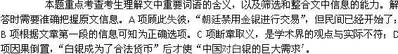 小题1:本题重点考查考生根据文章内容进行推断和想象的能力,需要根据原文信息和人文知识推断。D项夸大事实,“中国对于白银的巨大需求”应为“白银的货币化”,“ 开始形成”应为“开端”。 A、B、C、三项可以根据原文第二段信息推断,均为正确选项。