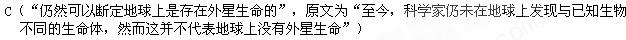 C.至今,科学家仍未在地球上发现与已知生物不同的生命体,然而仍然可以断定地球上是存在外星生命的。