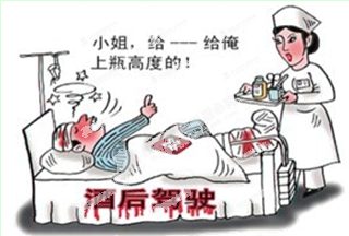 参考答案:画面内容——一位酒后驾驶者,因肇事被送往医院救护,头裹绷带,神志不清,当医护为他诊疗时,还醉眼朦胧,“意犹未尽”地要求医护:小姐,给——俺上瓶高度的(酒)。让医护张口结舌。(3分)