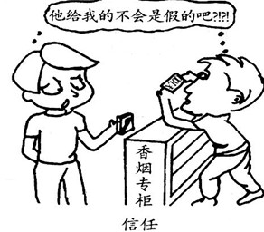 2、语言运用题  请结合漫画反映出的社会现象,写一段关于“信任”的文字,字数不超过100字。