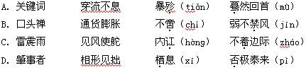 本题解析:A川流不息、蓦mò,C雷阵雨、着zhuó,D相形见绌、栖qī